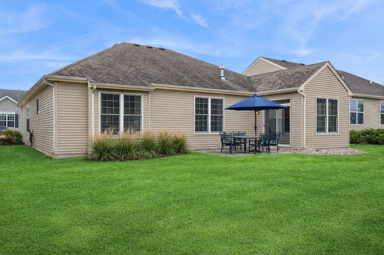 Welcome to easy, resort-style living in this beautiful former builder's model located in a sought-after 55+ community! Lawn care and snow removal included in your HOA!!! This thoughtfully designed home offers exceptional upgrades and a bright, open layout perfect for both relaxing and entertaining. Step inside to the stunning living room featuring a soaring cathedral ceiling and cozy fireplace, creating a warm and inviting focal point. The dining area just off the living room makes hosting gatherings effortless. The fabulous kitchen is a chef's delight with a center island, ample cabinetry, and a sunny eating area. Just beyond the kitchen is a charming sunroom with a vaulted ceiling, the perfect spot to enjoy morning coffee or unwind with a book. A sliding glass door leads to the patio, offering a great space for outdoor relaxation. The spacious primary suite is a true retreat with a bump-out window, elegant tray ceiling, and a luxurious private bath featuring double sinks, a soaking tub, separate shower, walk-in closet, and the added luxury of heated bathroom floors. Two additional bedrooms provide flexible space for guests, a home office, or hobby room. A 2-car garage adds convenience and extra storage. Enjoy the lifestyle you deserve with resort-style amenities including a clubhouse, pool, fitness center, and scenic walking trails-all designed to make every day feel like a getaway. This exceptional home combines comfort, style, and community living all in one wonderful package. Don't forget to check out the 3D interactive floor plan. Seller will convey existing plat of survey.