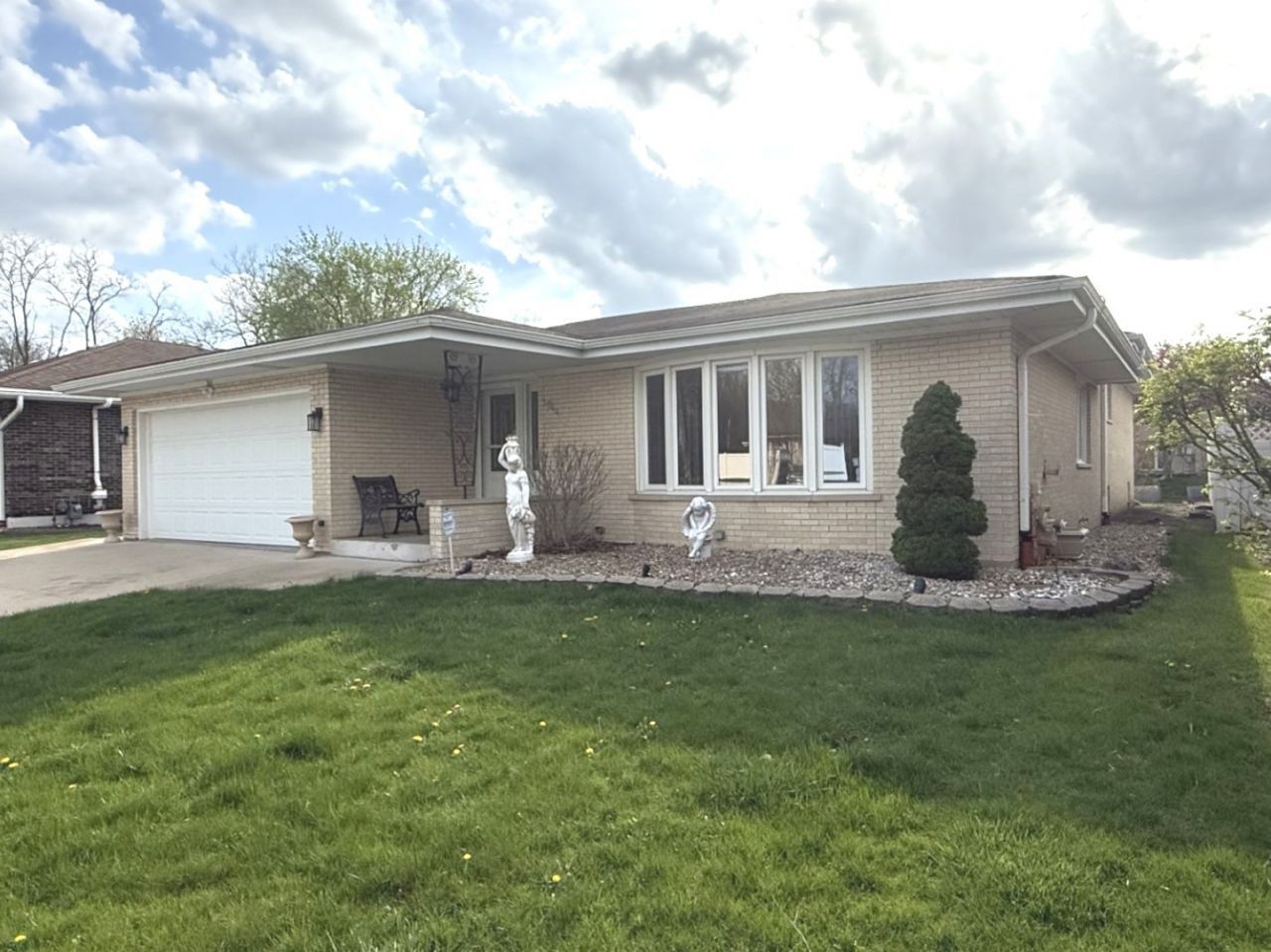 Well-maintained all-brick three-step Ranch, built in 1977, offering a spacious and functional layout with timeless features throughout. This home welcomes you with a foyer entry leading into a bright and expansive Living Room featuring a beautiful bay window. The adjacent L-shaped Dining Room provides ample space for entertaining and flows seamlessly into the Kitchen, which is equipped with abundant Oak cabinetry, Corian countertops, and built-in appliances. The kitchen opens to a large Family Room measuring approximately complete with a cozy wood-burning fireplace-perfect for everyday living and gatherings. A convenient powder room is located just off the kitchen. Hardwood Oak flooring runs throughout the main level and all bedrooms, adding warmth and continuity to the home. Just a few steps up, you'll find the private bedroom wing. The Primary Suite offers two closets and a three-quarter bath with a stand-up shower. The second Bedroom features hardwood floors and also has two closets, while the third Bedroom also includes hardwood flooring. A full hallway with linen and storage closets completes this level. The home includes a large unfinished basement with high ceilings, offering excellent potential for additional living space. There is also a full cemented crawlspace beneath the main level, providing exceptional storage. Mechanical updates include a newer water heater with expansion tank and the home also has central air. The furnace has been well maintained and is estimated to be approximately 10 years old. Exterior features include an attached two-car garage, a driveway for additional parking, and a backyard with a covered patio and paver brick area-ideal for outdoor enjoyment. Pride of ownership shows, with the same family having cared for the home for over 25 years. Seller is offering a one-year Home Warranty. Conveniently located near shopping, restaurants, banking, and within a short drive to major expressways, making commuting and daily errands a breeze.